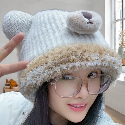 Popular Bear Plush Hat Winter Women's Autumn and Winter Velvet Cold Protection Knitted Woolen Cap Fur Earflaps Warm