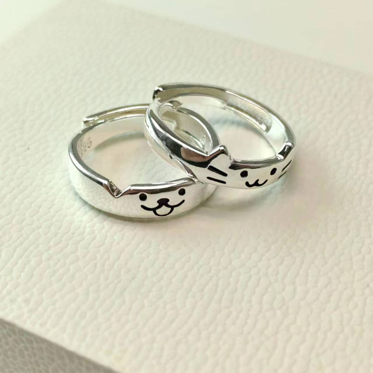 Cincin Buku Harian Anjing dan Kucing Perak 925 Anak Kucing Lucu Anak Anjing Desain Canggih Dapat Mengukir Cincin Pasangan Tulisan