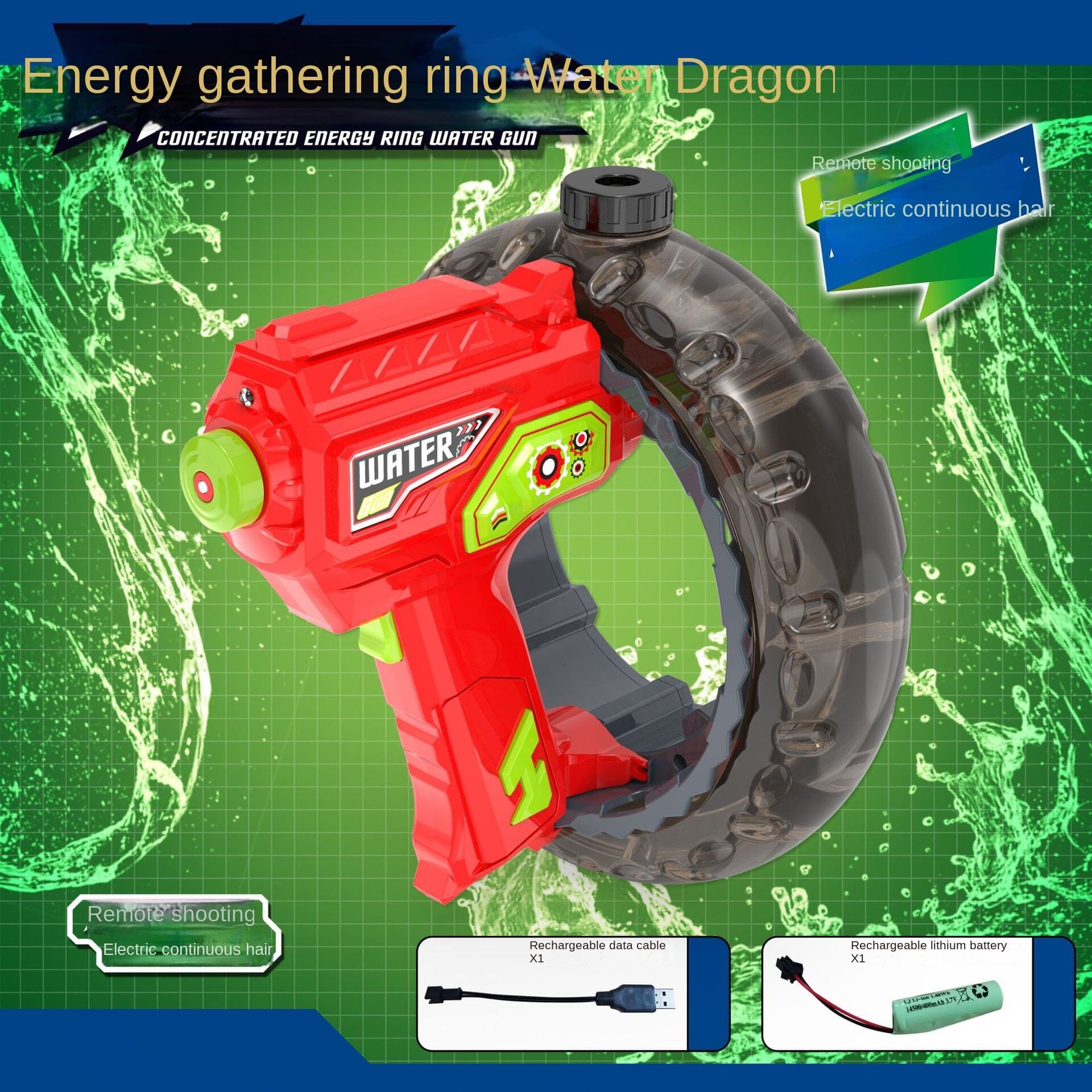 Pistol Air Elektrik Loop Pemusat Energi Baru Pistol Air Keren Ringan Kapasitas Besar Mainan Anak-anak Rambut Satu Tombol